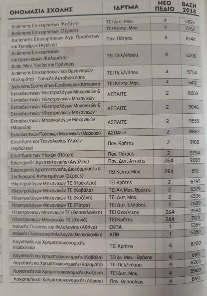 1. Πράσινες (ελεύθερης πρόσβασης) και κόκκινες (εισαγωγής με Πανελλαδικές) σχολές: