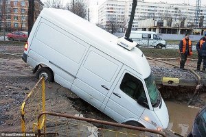 Έξω από την πολυκατοικία άνοιξε μια τρύπα η οποία «κατάπιε» ένα σταθμευμένο φορτηγάκι.