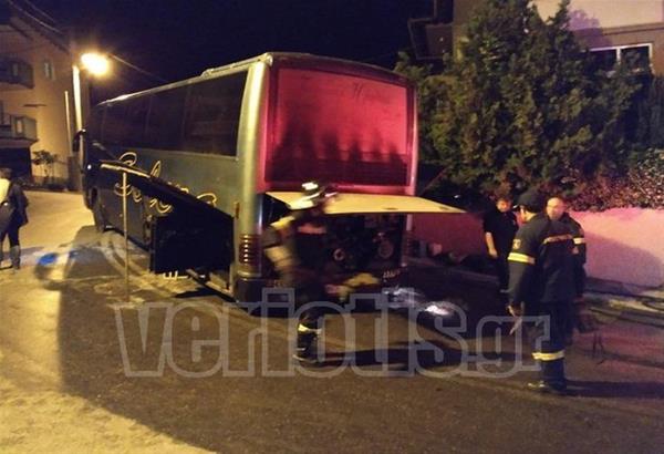 Λεωφορείο με πιστούς από την ενορία της Αγίας Παρασκευής που επέστρεφε από προσκυνηματική εκδρομή στις Σέρρες, έπιασε φωτιά ενώ κινήτω στην περιοχή Παπάγου στη Βέροια, περίπου στις 10 το βράδυ του Σαββάτου 11 Μαΐου.