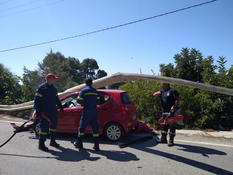 Στο σημείο μετέβησαν πυροσβέστες για τον απεγκλωβισμό του αυτοκινήτου και τον καθαρισμό του οδοστρώματος απο τα συντρίμμια.