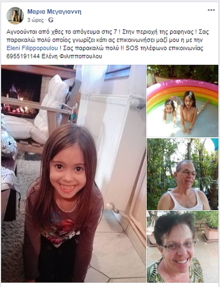 Τα 9χρονα δίδυμα αδερφάκια, η Βασιλική και η Σοφία Φιλιπποπούλου που αγνοούνταν μαζί με τους παππούδες τους από το απόγευμα της «μαύρης» Δευτέρας, βρέθηκαν νεκρά λίγες μέρες μετά. Ήταν στην αγκαλιά του παππού και της γιαγιά τους, που μέχρι την τελευταία στιγμή προσπάθησαν να προστατεύσουν από τις φλόγες βάζοντας μπροστά το σώμα τους.