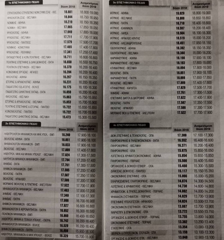 Εφημερίδα παρουσίασε τις εκτιμήσεις των βάσεων για τα συνολικά 85 τμήματα που εντάσσονται και στα τέσσερα επιστημονικά Πεδία.