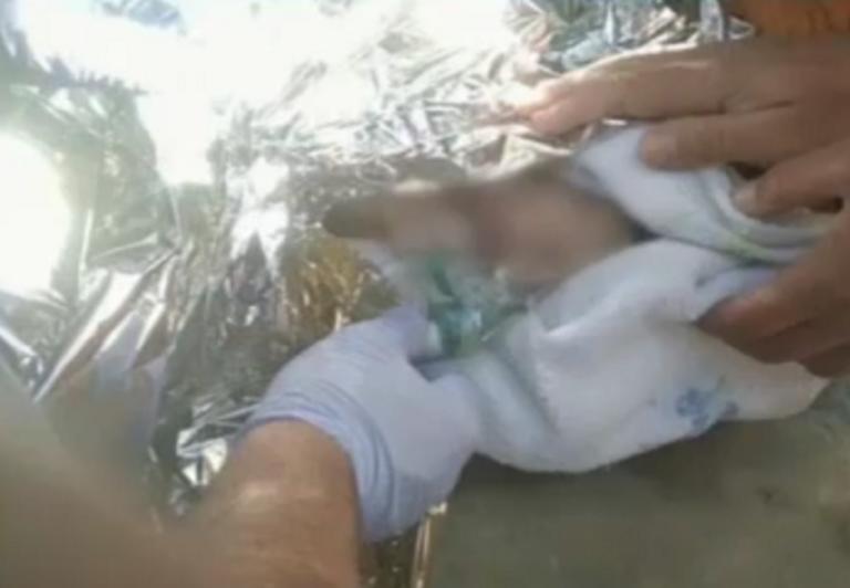 Οι εικόνες που τράβηξαν οι αυτόπτες μάρτυρες είναι ενδεικτικές. Το βρέφος ήταν μούσκεμα και τα ματάκια του κλειστά. Το ένα του χέρι ήταν λίγο μελανιασμένο.