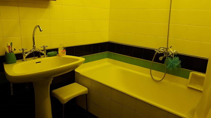 Το μπάνιο είναι το μοναδικό δωμάτιο στο διαμέρισμα το οποίο δεν είναι στην αρχική του μορφή. Το διαμέρισμα παραδόθηκε με ξεχωριστό λουτρό και ξεχωριστό καμπινέ ακολουθώντας μία τεχνοτροπία που κυριάρχησε τις δεκαετίες ’10, ’20, ’30 και ‘40, οπότε και το καμπινέ θεωρούνταν ο βρώμικος χώρος του σπιτιού και δεν τον ήθελαν επ’ ουδενί στον χώρο καλωπισμού όπου ήταν το λουτρό.
