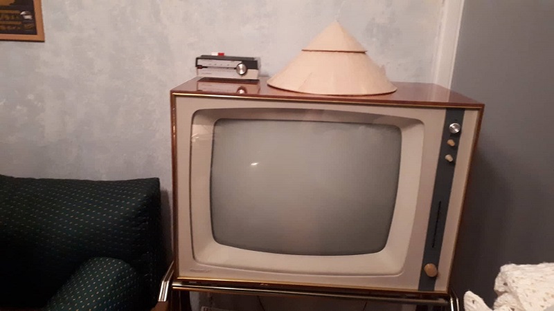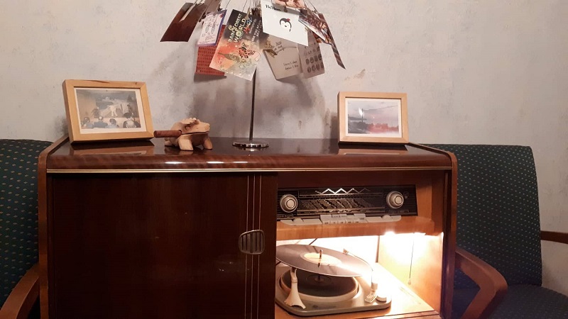 Τα έπιπλα στο σαλόνι δεν έχουν αναπαλαιωθεί και αυτό γιατί η γνήσια αλλά φθαρμένη όψη που διακρίνεται στους τοίχους θα έδειχνε κάτι ξένο με τα γυαλιστερά έπιπλα, οπότε ο ιδιοκτήτης αποφάσισε να τα αφήσει έτσι προκειμένου να υπάρχει ένα αρμονικό σύνολο. Η τηλεόραση είναι από την ανατολική Γερμανία του 1957.