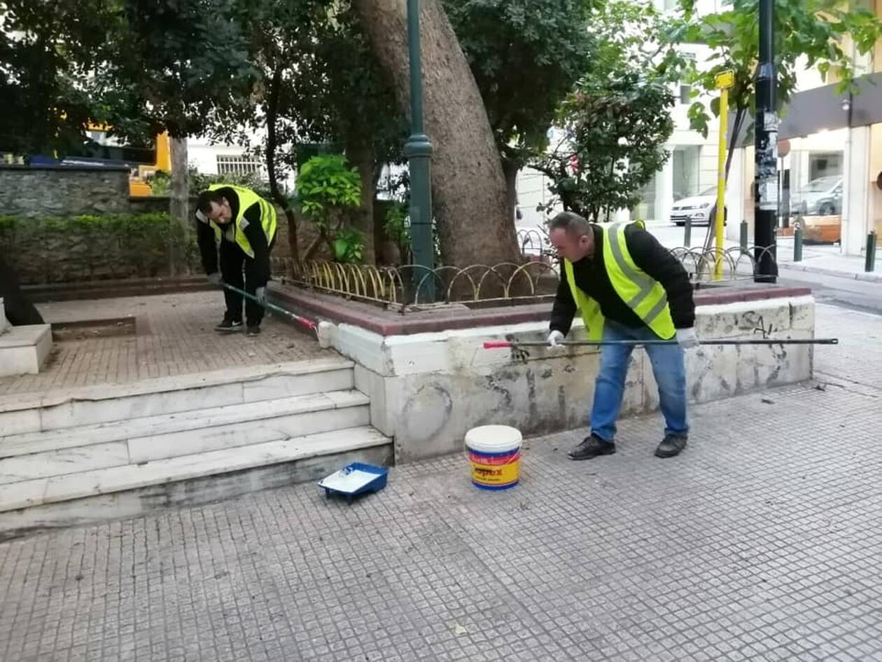Στην πλατεία του Αγίου Διονυσίου Αρεοπαγίτη στο Κολωνάκι συνεχίζονται σήμερα (02/12), οι δράσεις καθαρισμού των δημόσιων χώρων στις 129 γειτονιές της Αθήνας, καθώς από το πρωί συνεργεία του δήμου καθαρίζουν, κλαδεύουν, βάφουν και αποκαθιστούν βλάβες.