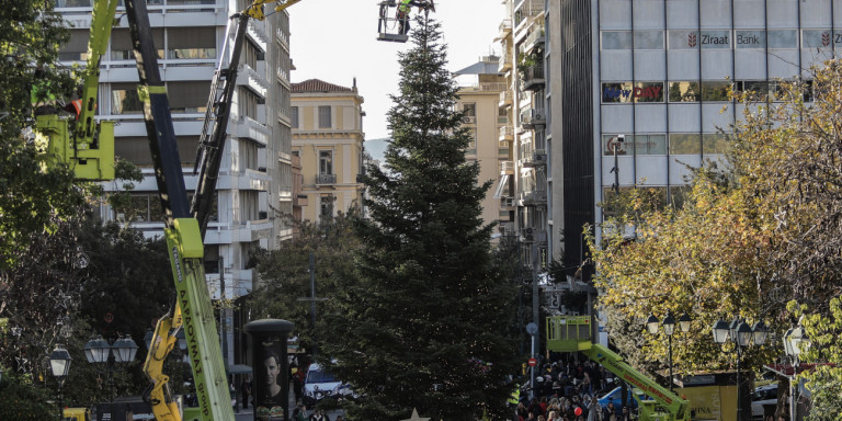 Στήθηκε το χριστουγεννιάτικο δέντρο και φέτος στη καθιερωμένη θέση του.Το έλατο έχει ύψος 17 μέτρα και είναι φυσικό!
