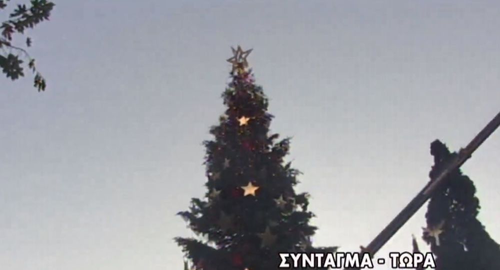 Παρά την ισχυρή βροχή πολύς κόσμος βρέθηκε στην πλατεία Συντάγματος όπου ο δήμαρχος Κώστας Μπακογιάννης φωταγώγησε το φυσικό χριστουγεννιάτικο δέντρο ύψους 17 μέτρων το οποίο ήρθε στην πρωτεύουσα από το Καρπενήσι.