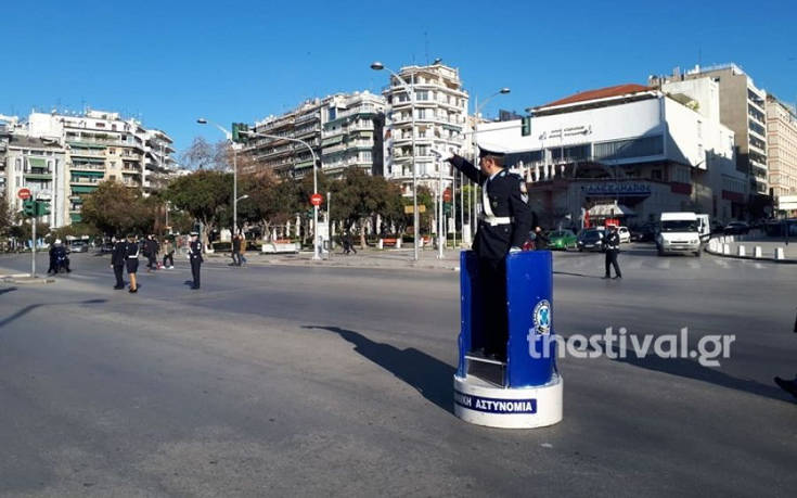 Τη θέση του απέναντι από τον Λευκό Πύργο, πήρε για ακόμα μία χρονιά, παραμονή της Πρωτοχρονιάς, ο τροχονόμος, ο οποίος από το γνωστό «βαρέλι» του, ρυθμίζει την κυκλοφορία των οχημάτων.