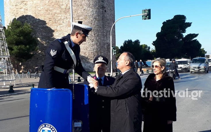 Ο τροχονόμος δέχθηκε δώρα και ευχές για το νέο έτος από εκπροσώπους της Γενικής Αστυνομικής Διεύθυνσης Θεσσαλονίκης, εκπροσώπους κομμάτων αλλά και της Τοπικής Αυτοδιοίκησης.