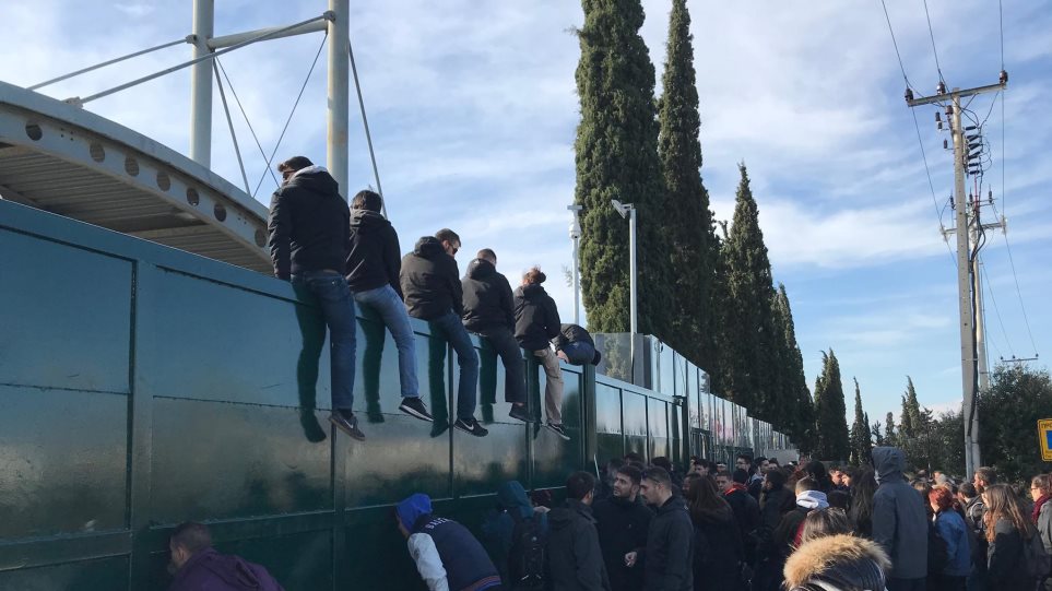 Στη μέσα πλευρά υπάρχουν δυνάμεις των ΜΑΤ σε απόσταση όμως από την πύλη και χωρίς να έχουν επέμβει.