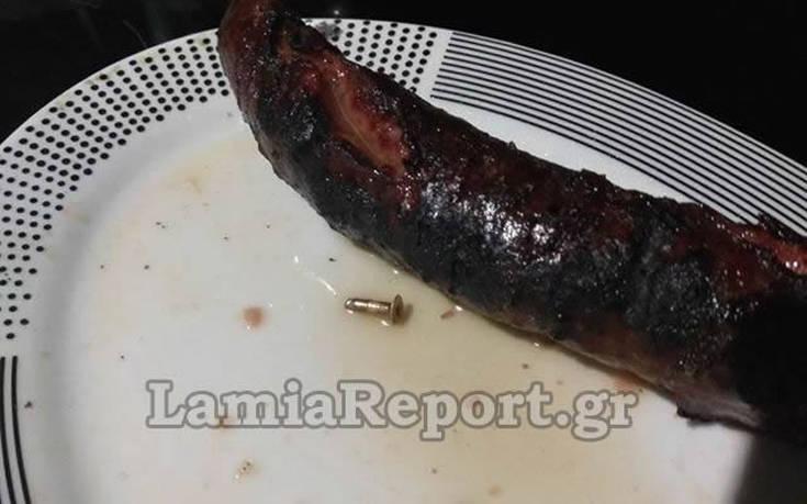 Μια γυναίκα στη Λαμία, ενώ έτρωγε λουκάνικο βρήκε μέσα σε αυτό μια βίδα, όπως καταγγέλλει η ίδια.