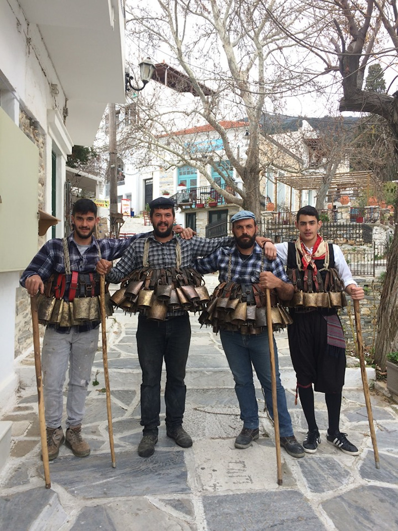 Οι κουδουνάτοι από Αθλητικό Μορφωτικό Σύλλογο Φιλωτίου «Ο Ζευς» και την Ένωση Αγροτικών Συνεταιρισμών Νάξου με τον εκκωφαντικό θόρυβο που κάνουν ξορκίζουν το κακό και υποδέχονται την άνοιξη.