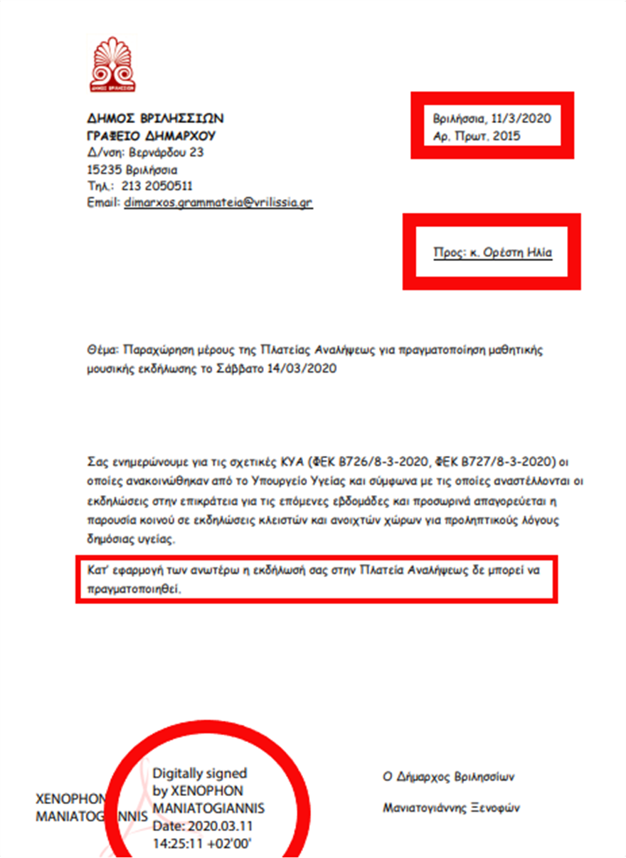 Δείτε το σχετικό έγγραφο με το οποίο είχε ανακληθεί η αρχική άδεια και το οποίο οι διοργανωτές αγνόησαν επιδεικτικά.