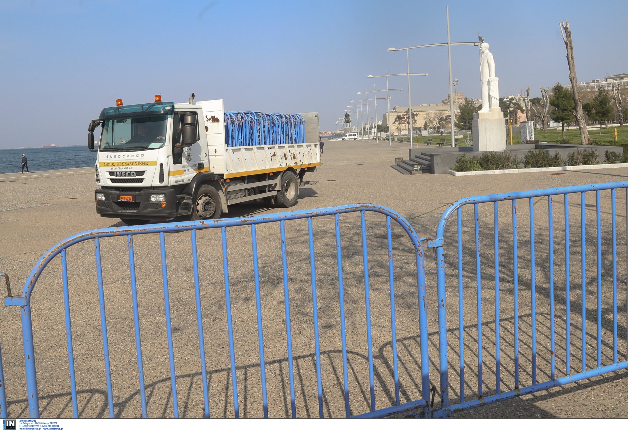 Έκλεισε οριστικά για τους πολίτες, από το μεσημέρι της Τρίτης, η Νέα Παραλία από τον Λευκό Πύργο έως το Μέγαρο Μουσικής, προκειμένου να αποφεύγεται ο συνωστισμός, στο πλαίσιο των μέτρων περιορισμού της εξάπλωσης του κορωνοϊού.