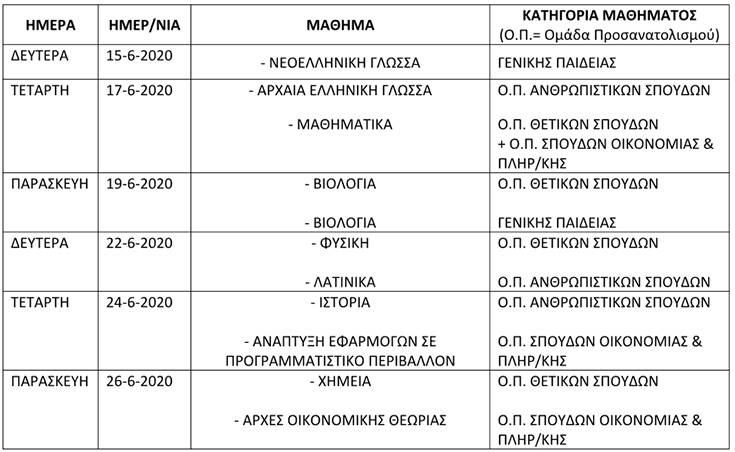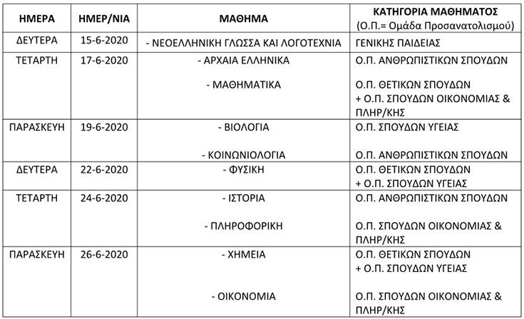 2. Πρόγραμμα Πανελλαδικών Εξετάσεων 2020 των ημερήσιων και εσπερινών ΓΕΛ με το παλαιό σύστημα