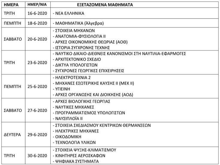 Το πρόγραμμα των εξετάσεων