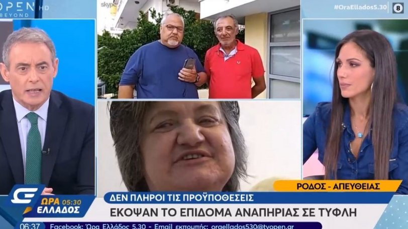 Απίστευτα πράγματα συμβαίνουν στην Ρόδο αφού μια μια 55χρονη η οποία έχει χάσει τα δυο της πόδια από ζάχαρο, είναι τυφλή και έχει άνοια, δεν παίρνει πλέον το επίδομα αναπηρίας.