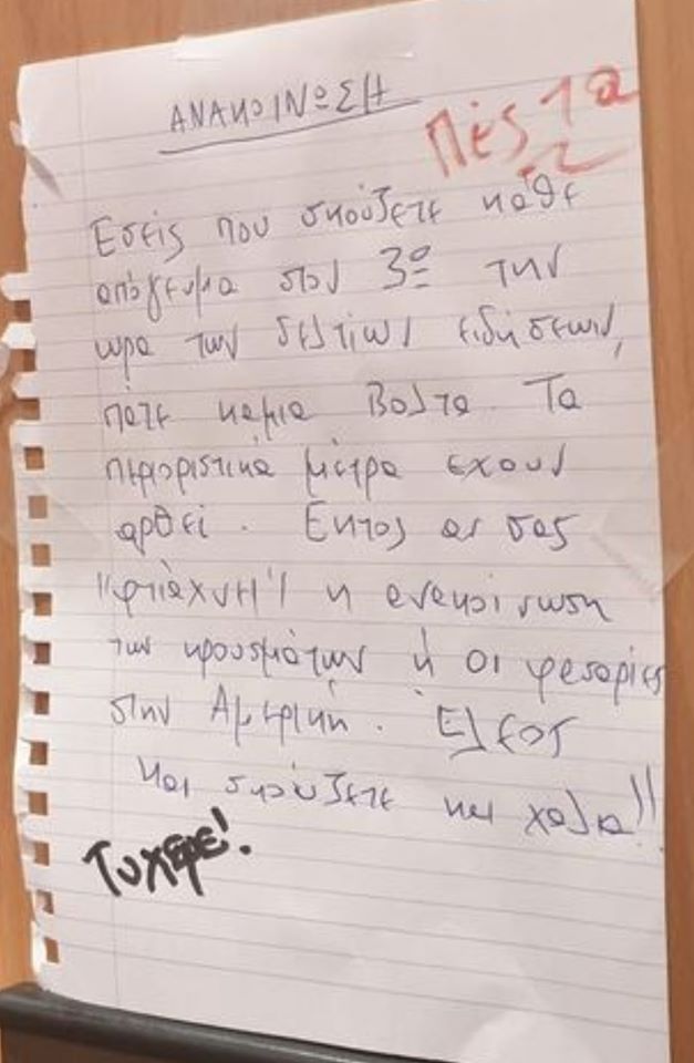Viral μήνυμα σε πολυκατοικία: «Σας… “φτιάχνουν” τα κρούσματα και σκούζετε;» (φώτο)
