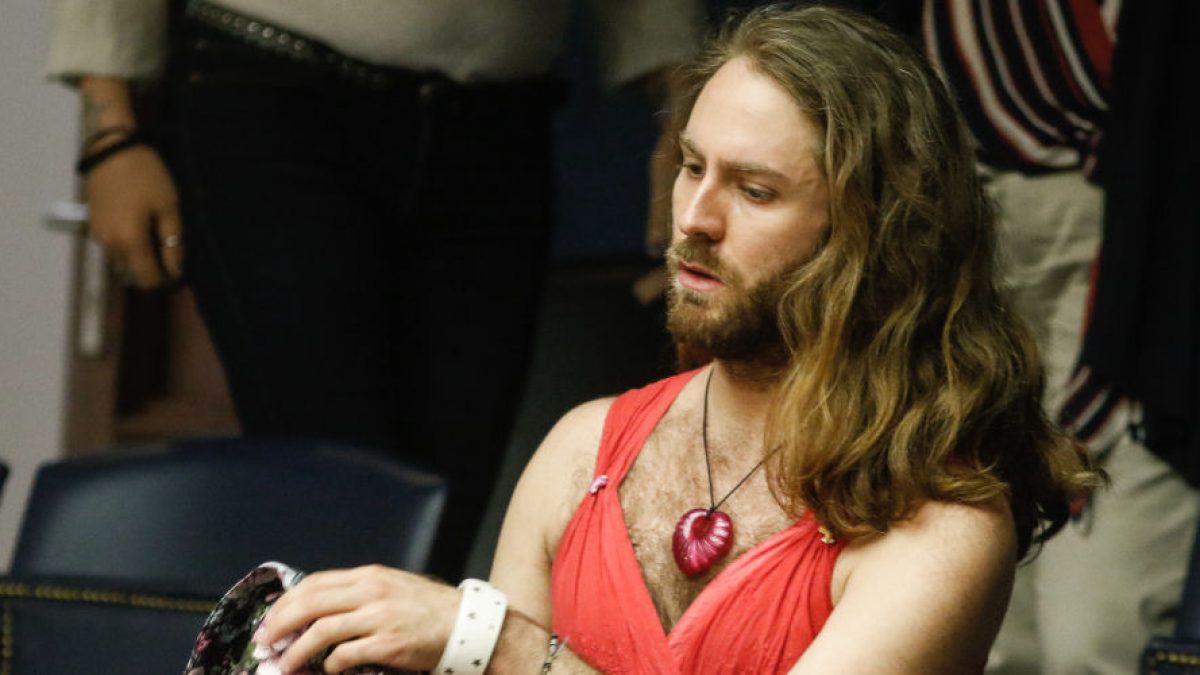 Αλλάζει το όνομά του σε Τζέισον-Αντιγόνη, κάνει θεαματική είσοδο στα θεωρεία της Βουλής φορώντας κόκκινο φουστάνι με βαθύ ντεκολτέ, ποζάρει με ροζ φόρεμα δίπλα σε τσολιά, υιοθετεί τον γυμνό ακτιβισμό στα Athens Pride φέροντας στο κορμί του συνθήματα που σκανδαλίζουν.