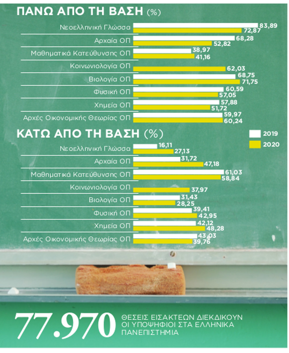 Αρκετοί μαθητές έγραψαν χαμηλότερα από τις προσδοκίες τους καθώς τα ποσοστά κάτω από τη βάση αυξήθηκαν δραματικά φέτος. Από το Σάββατο και μέχρι την ερχόμενη Παρασκευή 17 Ιουλίου οι υποψήφιοι πρέπει να «κλειδώσουν» τις επιλογές τους στο μηχανογραφικό δελτίο και στη συνέχεια να περιμένουν το τελευταίο δεκαήμερο του Αυγούστου την ανακοίνωση των βάσεων.