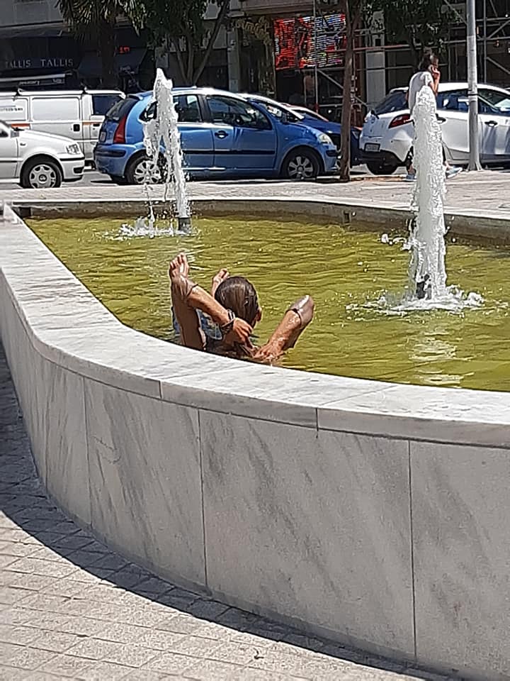 Μια κοπέλα στην Θεσσαλονίκη προφανώς δεν άντεξε την αφόρητη ζέστη και αποφάσισε να δροσιστεί… επί τόπου βουτώντας στο συντριβάνι στο κέντρο της πόλης.