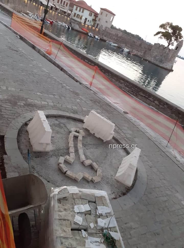 Σε τρία συγκεκριμένα σημεία, δε, σύμφωνα με το τοπικό npress.gr, θα μπει σε κυκλικό πλαίσιο το σήμα της Ναυπάκτου, σχεδιασμένο με πέτρες (κεντρική φώτο).