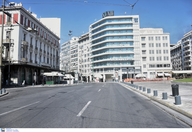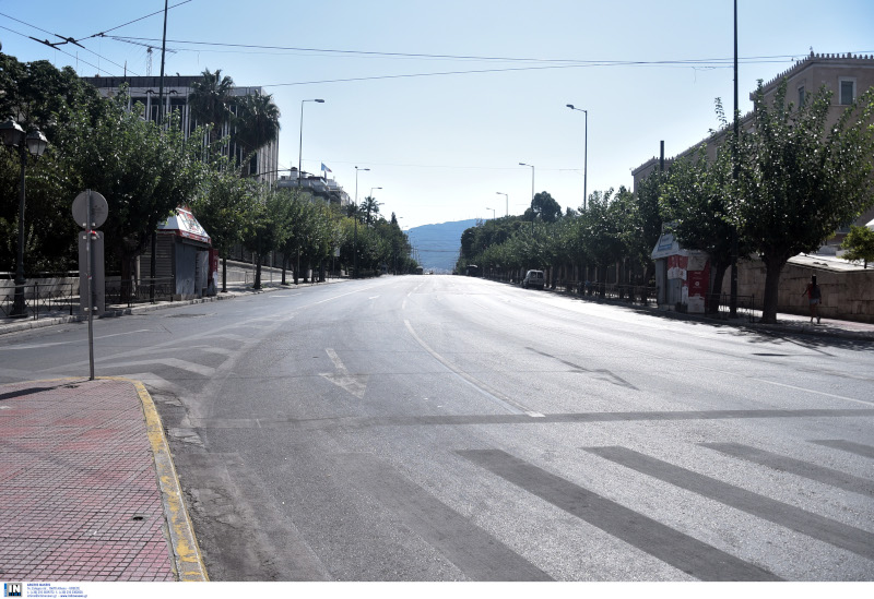 Άδειοι οι δρόμοι στο κέντρο της Αθήνας.