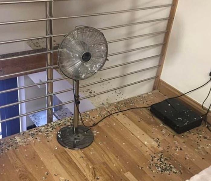 Ο νεαρός φοιτητής από το Λονδίνο είχε κάνει το λάθος να αφήσει το παράθυρο ανοιχτό, με αποτέλεσμα στο διάστημα της πολύμηνης απουσίας του περιστέρια να μπουν στο δωμάτιο και να το κάνουν άνω-κάτω. Το πάτωμα, τα ρούχα του, η ντουλάπα του και γενικά σχεδόν τα πάντα ήταν καλυμμένα από κουτσουλιές, ενώ στο νεροχύτη του μπάνιου υπήρχαν μερικά αβγά κι ένα μικρό πουλάκι.