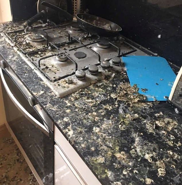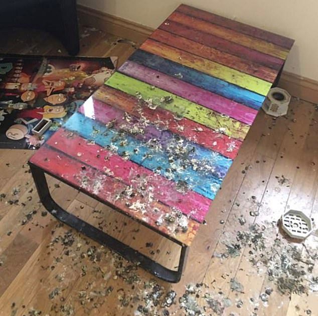 Ο νεαρός φοιτητής από το Λονδίνο είχε κάνει το λάθος να αφήσει το παράθυρο ανοιχτό, με αποτέλεσμα στο διάστημα της πολύμηνης απουσίας του περιστέρια να μπουν στο δωμάτιο και να το κάνουν άνω-κάτω. Το πάτωμα, τα ρούχα του, η ντουλάπα του και γενικά σχεδόν τα πάντα ήταν καλυμμένα από κουτσουλιές, ενώ στο νεροχύτη του μπάνιου υπήρχαν μερικά αβγά κι ένα μικρό πουλάκι.