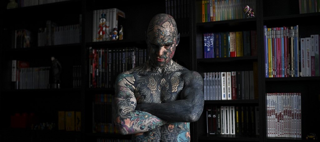 Ο 35χρονος Σιλβέν Ελέν έχει τατουάζ στο σώμα, στο πρόσωπο και στη γλώσσα ενώ έχει μετατρέψει, χειρουργικά, τον σκληρό χιτώνα (λευκό) του ματιού του σε μαύρο.