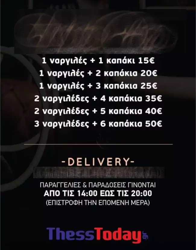 Ένας δαιμόνιος επιχειρηματίας στη Θεσσαλονίκη δεν πτοήθηκε από τα μέτρα που επέβαλε η κυβέρνηση και είχε την ιδέα να μετατρέψει τον ναργιλέ σε απόλαυση κατ’ οίκον.