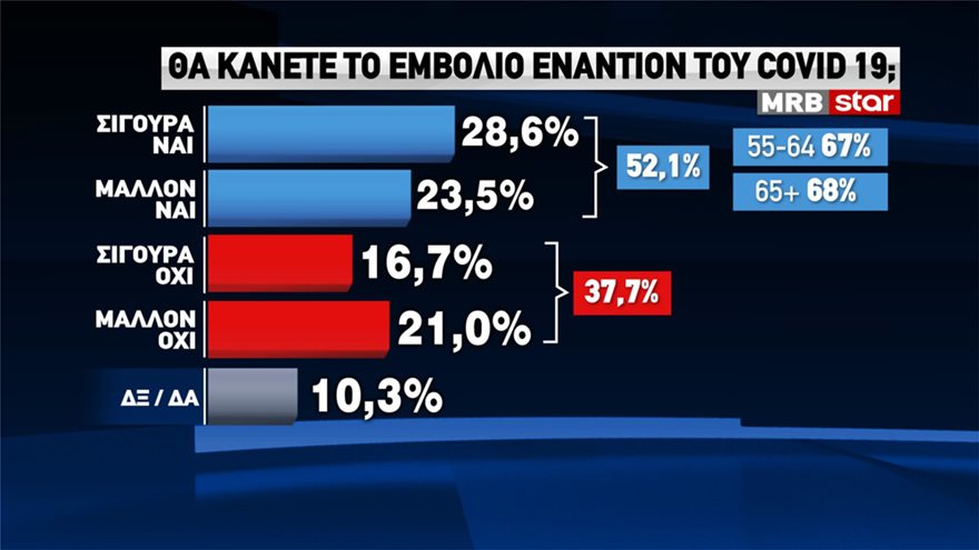Επιπρόσθετα μόνον ένας στους δύο Έλληνες λέει ότι θα κάνει το εμβόλιο για τον κορωνοϊό, κάνοντας κάποιους να αναρωτιούνται εάν οι μισοί Έλληνες είναι οι κατά την κυβέρνηση «ανόητοι» και ψεκασμένοι.
