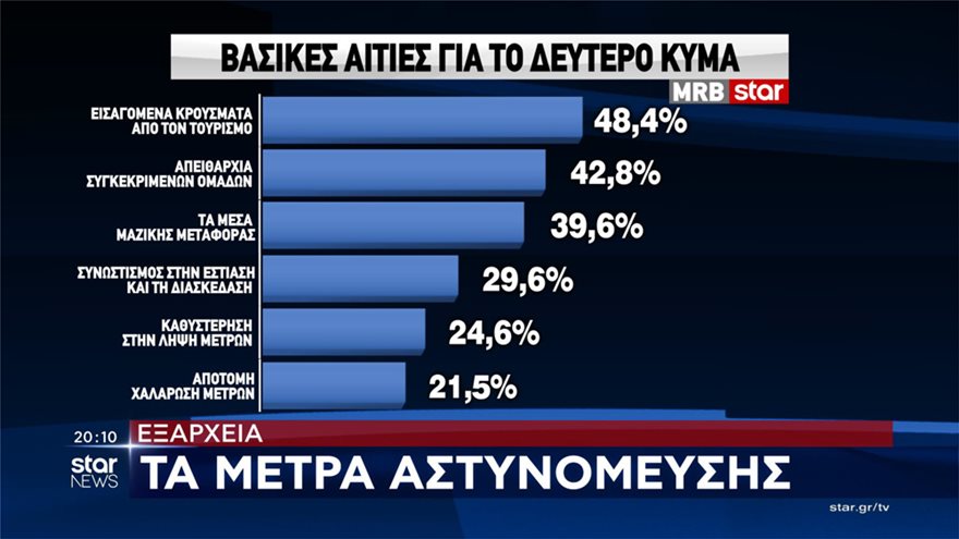 Αντιθέτως οι πολίτες δείχνουν τα ως πρώτους λόγους τα «εισαγόμενα κρούσματα» και τα Μέσα Μεταφοράς – εκτός από την απειθαρχία στα μέτρα συγκεκριμένων «κοινωνικών ομάδων» – αποδομώντας επί της ουσίας το κυβερνητικό αφήγημα που ήθελε να στοχοποιήσει τους νέους για τον κορωνοϊό, προκειμένου η ίδια να προφυλαχθεί από τις ευθύνες της.