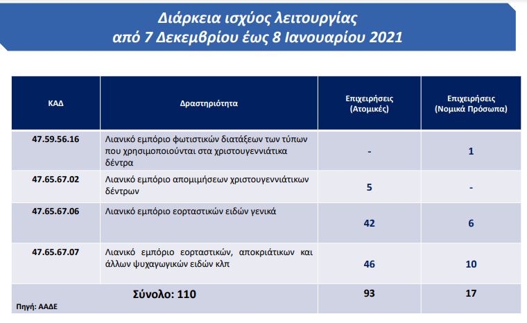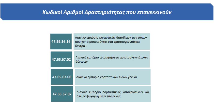 Επιχειρήσεις που διαθέτουν τους παραπάνω ΚΑΔ ως δευτερεύοντες απαγορεύεται να πωλούν τα εν λόγω προϊόντα.