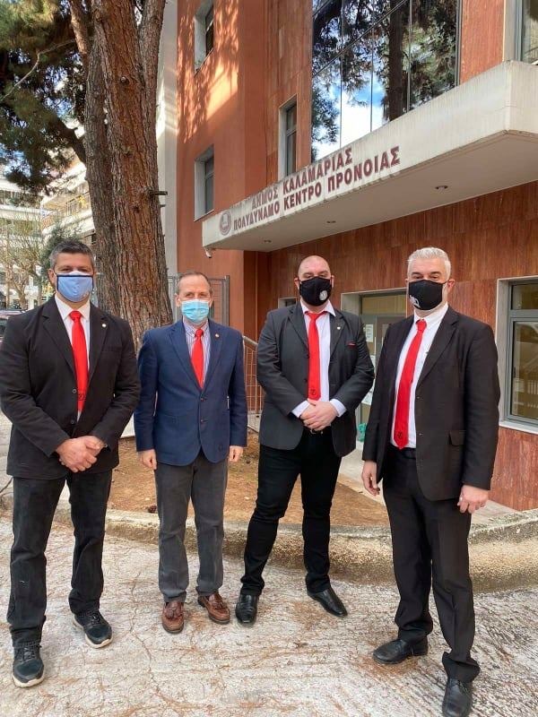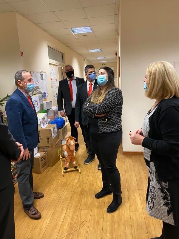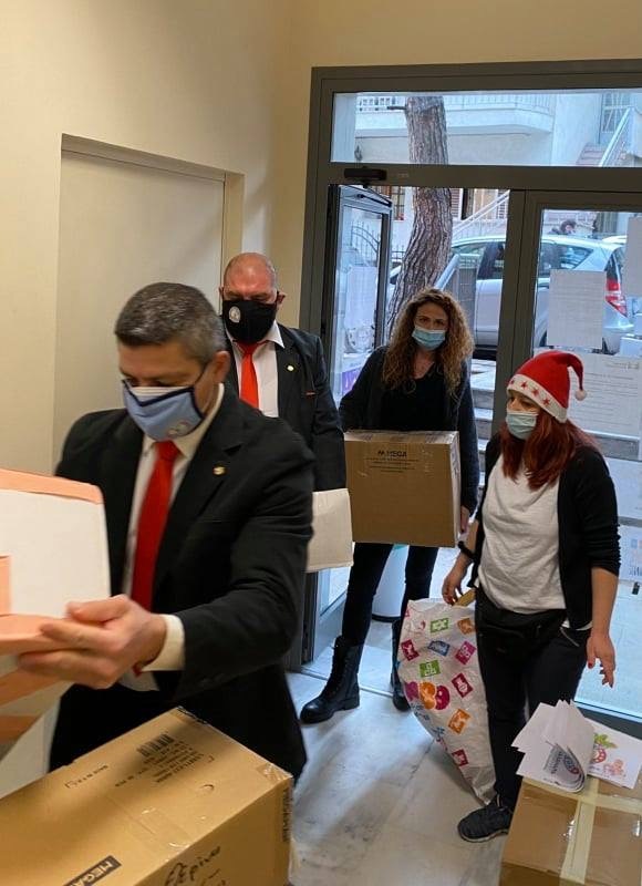 Το πρωινό της Πέμπτης 31η Δεκεμβρίου 2020, στο πλαίσιο της ετήσιας φιλανθρωπικής δράσης του του Τμήματος ΑΗΕΡΑ HJ41 Καλαμαριάς και κατόπιν μίας πολύ θερμής υποδοχής, η κ. Ευλαμπία Ντόντη Αντιδήμαρχος κοινωνικής πολιτικής, αλληλεγγύης και δημόσιας υγείας του Δήμου Καλαμαριάς, δέχθηκε από τον κ. Τοm R. Maguire, Αντιπρόεδρο του Τμήματος ΑΗΕΡΑ HJ41 Καλαμαριάς «Κωνσταντίνος Παλαιολόγος» τον κ. Αμασόγλου Κωνσταντίνο Γραμματέα, τον κ. Κράντα Κωνσταντίνο Υποδιευθυντή Γραμματείας και τον κ. Ελευθέριο Φουντόπουλο Διευθυντή Φιλανθρωπίας, εικοσιπέντε «ΔΕΜΑΤΑ ΑΓΑΠΗΣ» με βιβλία, φάρμακα, τρόφιμα, ρούχα και παιχνίδια στο Πολυδύναμο Κέντρο Πρόνοιας του Δήμου.