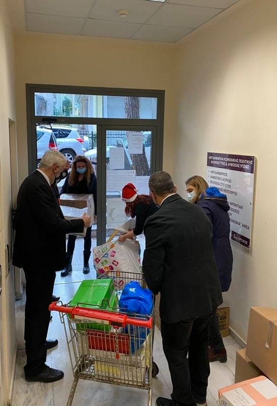 Η κ. Αντιδήμαρχος ξενάγησε τη αντιπροσωπεία του τμήματος μας και αντάλλαξε ευχές με τους υπαλλήλους του ΠΚΠ στα ιατρεία, το φαρμακείο το παντοπωλείο και το μαγειρείο, από το οποίο σιτίζονται καθημερινά περίπου 150 άπορες οικογένειες.
