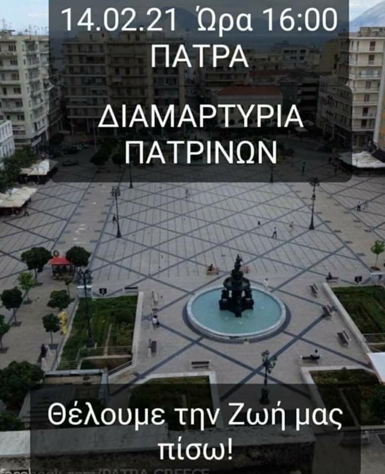 Μετά τη Θεσσαλονίκη και η Αθήνα και η Πάτρα, αλλά και Ζάκυνθος θα διαδηλώσουν την Κυριακή στις 4 το απόγευμα κατά του lockdown.