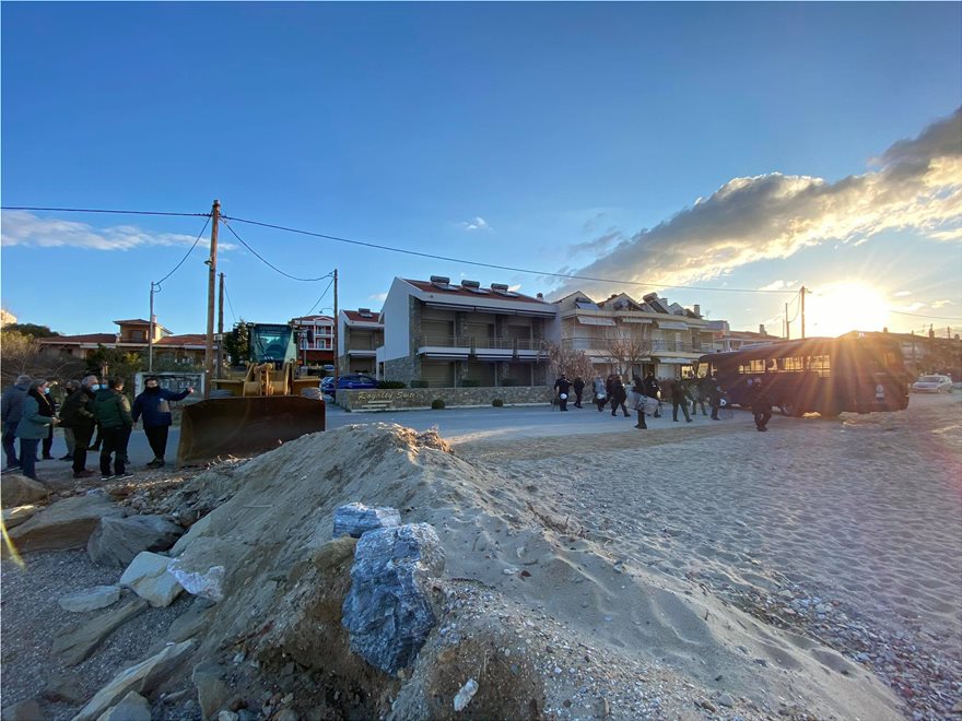 Οι κάτοικοι είναι συγκεντρωμένοι στην παραλία και δηλώνουν ότι δεν θα επιτρέψουν να ξεκινήσουν οι εργασίες και με οδοφράγματα και φωτιές θέλουν να σταματήσουν το δρόμο στα εκσκαπτικά μηχανήματα.