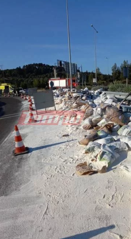 Το ατύχημα συνέβη όταν νταλίκα η οποία μετέφερε σακιά με αλεύρι, κινούμενη στο ύψος του κόμβου των Μποζαϊτίκων, υπέστη μετατόπιση φορτίου, με αποτέλεσμα μεγάλος μέρος από αυτό να πέσει στο οδόστρωμα.