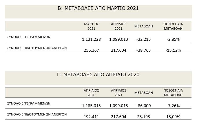 Τον Απρίλιο του 2021 εγγράφηκαν νέοι άνεργοι στον ΟΑΕΔ, 43.559 άτομα, με το 68,98% να είναι γυναίκες.