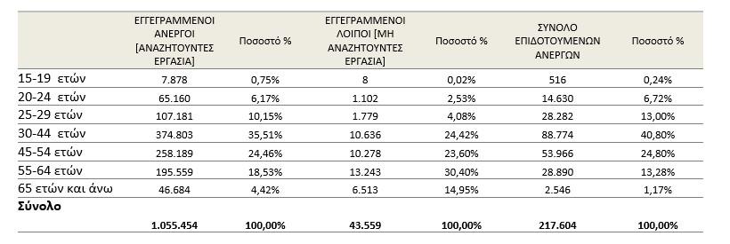Σύμφωνα με τα στοιχεία με βάση την ηλικία η ανεργία έχει ως εξής: