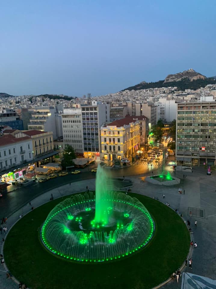 Για τον λόγο αυτόν, η Ομόνοια φωταγωγήθηκε στα πράσινα.