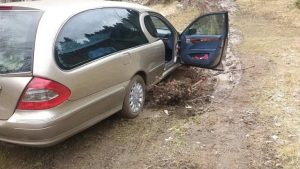 Όπως αναφέρουν τοπικές πηγές, το όχημα ανήκει σε Οίκο Τελετών του Πειραιά, το οποίο όχημα οδηγούσαν δύο εργαζόμενοι. Παρά τις προσπάθειες τους να συνεχίσουν, το όχημα παρέμεινε εγκλωβισμένο στις λάσπες χωρίς να μπορεί να κινηθεί προς τα εμπρός ή προς τα πίσω, αφήνοντας την οικογένεια της εκλιπούσας σε αγωνία, καθώς περίμεναν να τελέσουν την κηδεία.