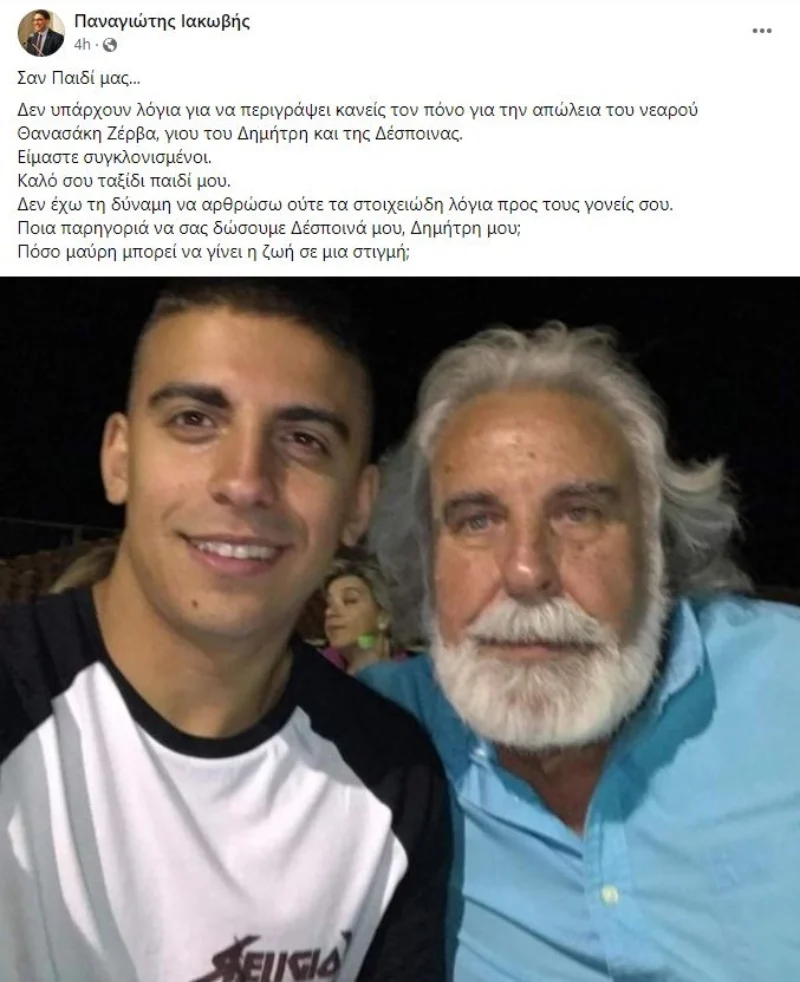 Δεν υπάρχουν λόγια για να περιγράψει κανείς τον πόνο για την απώλεια του νεαρού Θανασάκη Ζέρβα, γιου του Δημήτρη και της Δέσποινας.