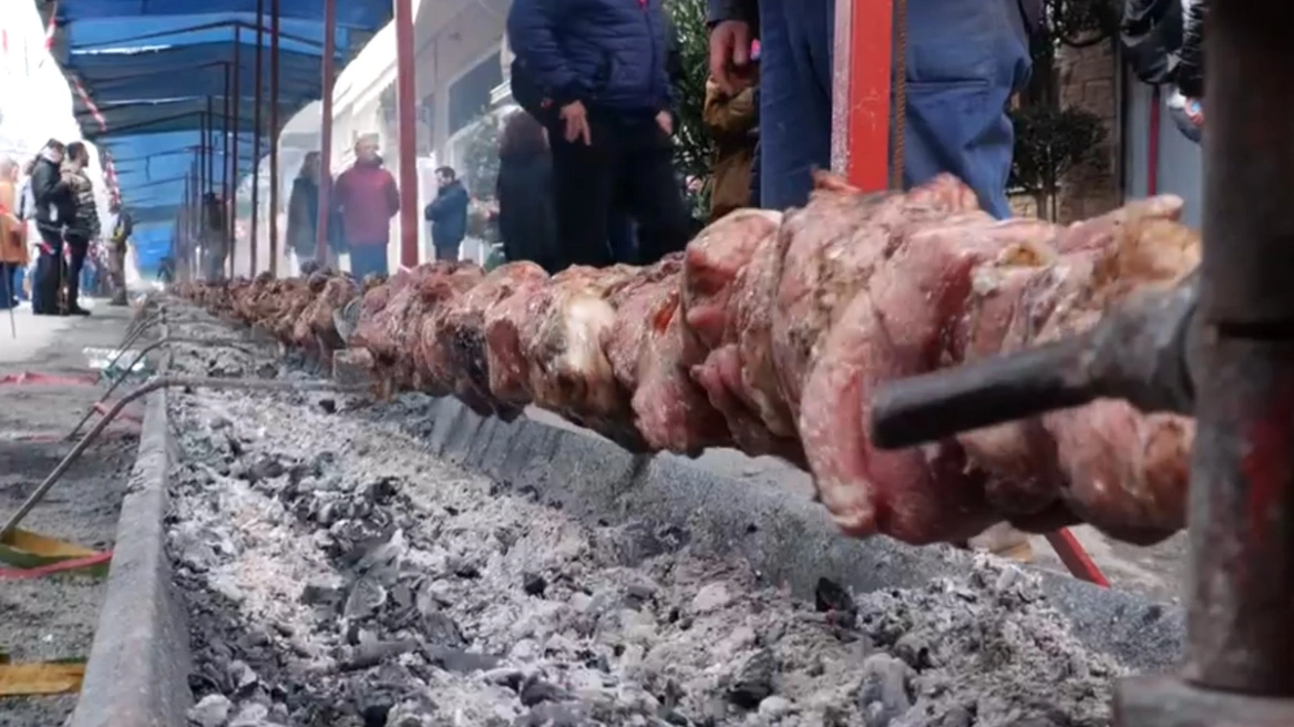 Γιγάντια σούβλα στήθηκε στην Αμφίκλεια με ένα κοντοσούβλι για ρεκόρ Γκίνες.