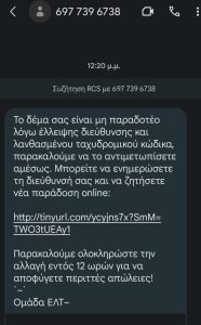 Με αλλαγές των στοιχείων φαίνεται ότι φροντίζουν να εμπλουτίζουν οι επιτήδειοι τις απάτες που στήνουν με δόλωμα δήθεν λάθη και παραλείψεις για παράδοση, ανύπαρκτου,πακέτου από τα ΕΛΤΑ.