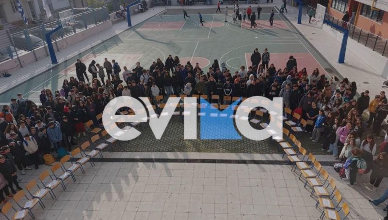 Οι μαθητές της Εύβοιας συγκινούν αποτίοντας φόρο τιμής στα θύματα του εγκλήματος των Τεμπών.