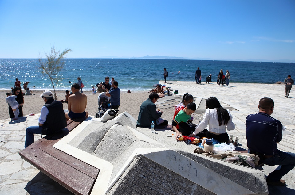 Αρκετοί ήταν οι Αθηναίοι που προτίμησαν τη θάλασσα μιας και είναι πιο κοντά για να περπατήσουν και να χαρούν τον καιρό.
