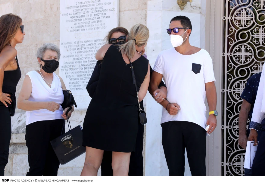 Την παρουσιάστρια και επιχειρηματία συνόδευσε ο γιος της, Γιώργος. Η θλίψη της ήταν εμφανής, με την ίδια να καταβάλλει προσπάθεια να τη κρύψει πίσω από τα μαύρα της γυαλιά.